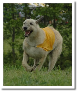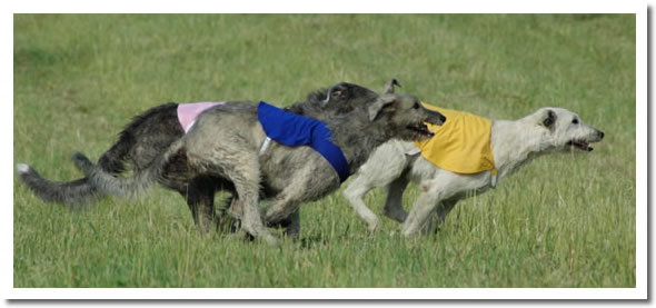 Because of his great size and the amount of exercise essential to his well-being, the Irish Wolfhound is not a dog to be acquired without serious fore-thought. His ideal home is one which provides fenced property of sufficient size to accommodate the galloping natural to this athletic sight hound. Hunting by sight and chase is what he was bred and historically used for; the length of leg and back, the deep chest, the power of his limbs and body attest to the heritage and needs of the Irish Wolfhound.