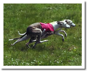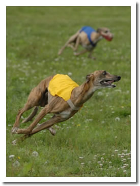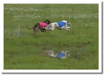 On non-working days, owners raced their whippets in fields and on town roads. These races became known as "rag races," probably because a piece of cloth was used as a lure. The dogs typically ran a straight 200 yard track.